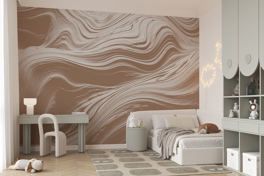 Alakítson át bármilyen helyiséget ezzel a magával ragadó falfestménnyel, amely fehér örvényeket ábrázol puha, földszínű háttéren. Egy csipetnyi modern eleganciát kölcsönöz, amely egyszerre nyugodt és stílusos. Képzelje el, hogy egy olyan térbe lép be, ahol a falakon mintha szelíd hullámok áramlanának – szinte olyan, mint egy álmodozó szoba. Ez a falfestmény tökéletesen illik egy nappaliba vagy egy nyugodt hálószobába, és finom bája megállásra invitál. A vendégek nem fognak távozni! Ráadásul olyan egyszerű a telepítése, hogy talán még arra is lesz ideje, hogy édes mellékprojektként süteményeket süssön. Tényleg, ki ne szeretne egy olyan hangulatos visszavonulót, amely örömet okoz?