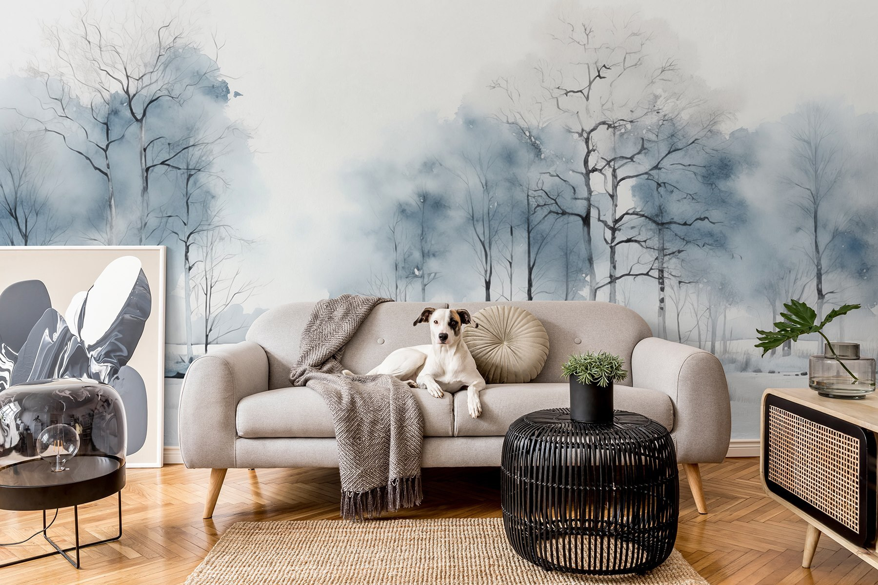 Transform any wall into a serene escape with this enchanting mural of a snowy field dotted with trees. Picture this: on a chilly evening, you cozy up with a book as this tranquil scene wraps around your space. The soft shades of blue and white create a calming atmosphere, making it perfect for relaxation or even some quiet contemplation. It’s like bringing a bit of winter magic indoors, without the cold toes! Whether you’re a nature lover or just looking to spark a conversation, this mural urges you to pause, breathe, and enjoy a little slice of peace right at home.