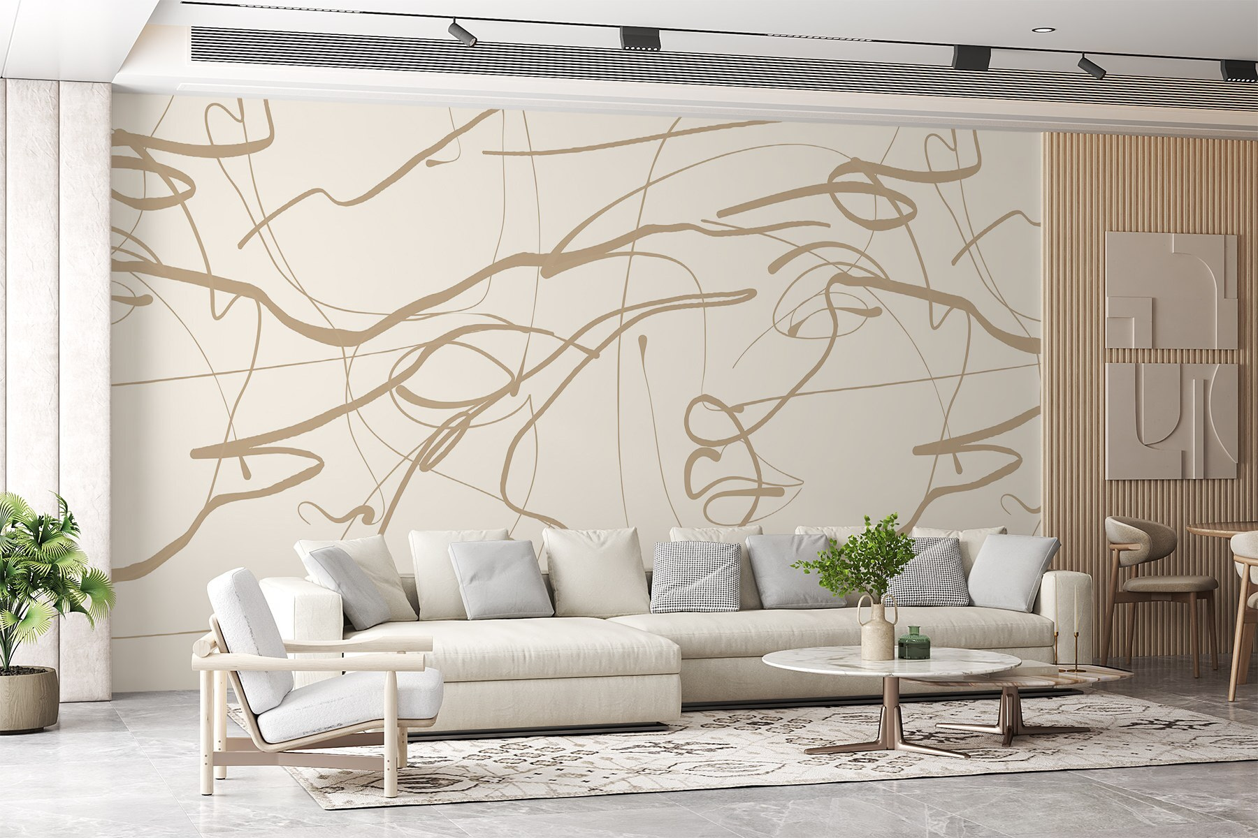 Imagine walking into a room and being greeted by a playful dance of lines, each twist and turn telling a story. This wall mural, with its creamy backdrop and warm brown lines, adds a splash of modern artistry that feels both cozy and intriguing. It’s like having a good chat with an old friend—familiar yet unexpected. The gentle curves can spark creativity or simply invite chill vibes. It’s perfect for a living room, a home office, or that little nook you’ve been meaning to revamp. Let the lines inspire your daydreams and conversations while standing out without screaming for attention. Perfect balance, right? Embrace the art that makes space feel like home.