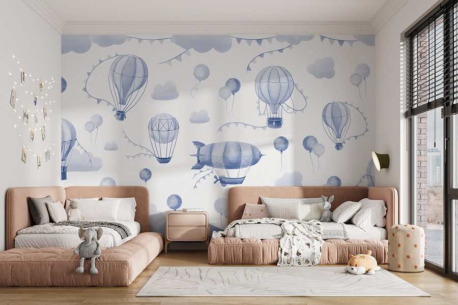 Képzelje el, hogy egy lágy felhőtengerre és szeszélyes hőlégballonokra ébred, amelyek a falakon lebegnek. Ez a falfestmény, amely játékos kék árnyalatokkal rendelkezik, arra csábít, hogy a fenséges hegyek felett szárnyaljon. Olyan, mint egy azonnali nyaralás, csomagolás nélkül. Tökéletes egy hangulatos gyerekszobához vagy egy kreatív munkaterülethez, nyugodt és inspiráló hangulatot kölcsönöz. Képzelje el, ahogy a gyerekek minden egyes ballont megmutatnak, és nevetve kitalálják, hová tartanak. Ki tudja, talán az egyik elviszi őket egy kalandra! Ez a falfestmény egyszerűen friss levegőt hoz minden térbe.