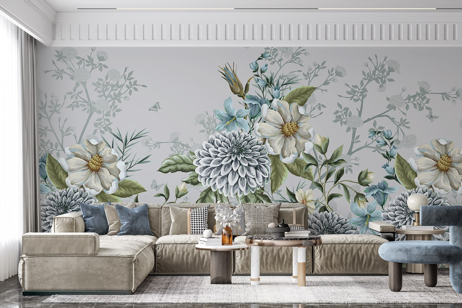 Transform your space with this stunning wall mural featuring an elegant floral design in soft, muted tones. Imagine stepping into a serene garden where the gentle colors whisper calmness and sophistication. Those intricate blooms just pop against the subtle backdrop, creating a vibe that’s both cozy and chic. It’s like having a piece of nature right in your living room! Perfect for a reading nook or as a backdrop for family photos, this mural adds a touch of whimsy without being too in-your-face. Who wouldn’t want to come home to that?