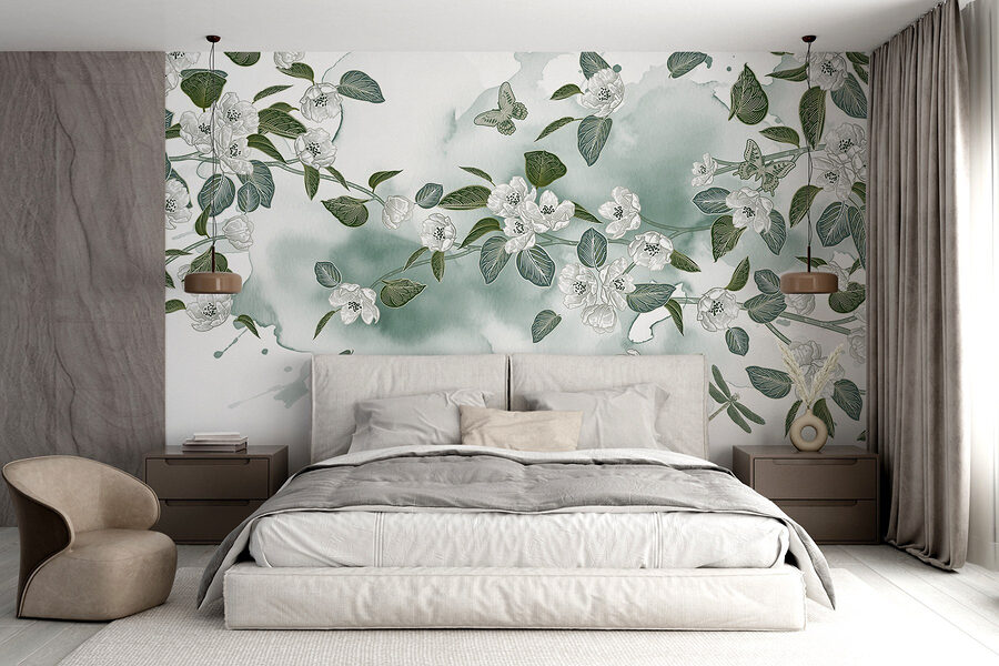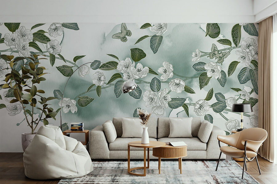 Varázsolja át otthonát ezzel a varázslatos, fehér virágokkal és buja zöld levelekkel díszített falfestménnyel, amely lágy fehér háttér előtt pompázik. Mintha a falai úgy döntöttek volna, hogy kertipartit rendeznek, és a természetet meghívják otthonába. Képzelje el, ahogy kávét kortyolgat, miközben a pillangók körülötte repkednek (jó, talán nem szó szerint, de olyan érzés). Ez az akvarell mintázat nyugtató hangulatot kölcsönöz, tökéletes hangulatos nappalikhoz vagy nyugodt hálószobákhoz. Frissítő, elegáns és kissé szeszélyes – biztosan jó beszélgetésindító! Ráadásul ki ne szeretne minden nap virágos örömökkel ébredni?