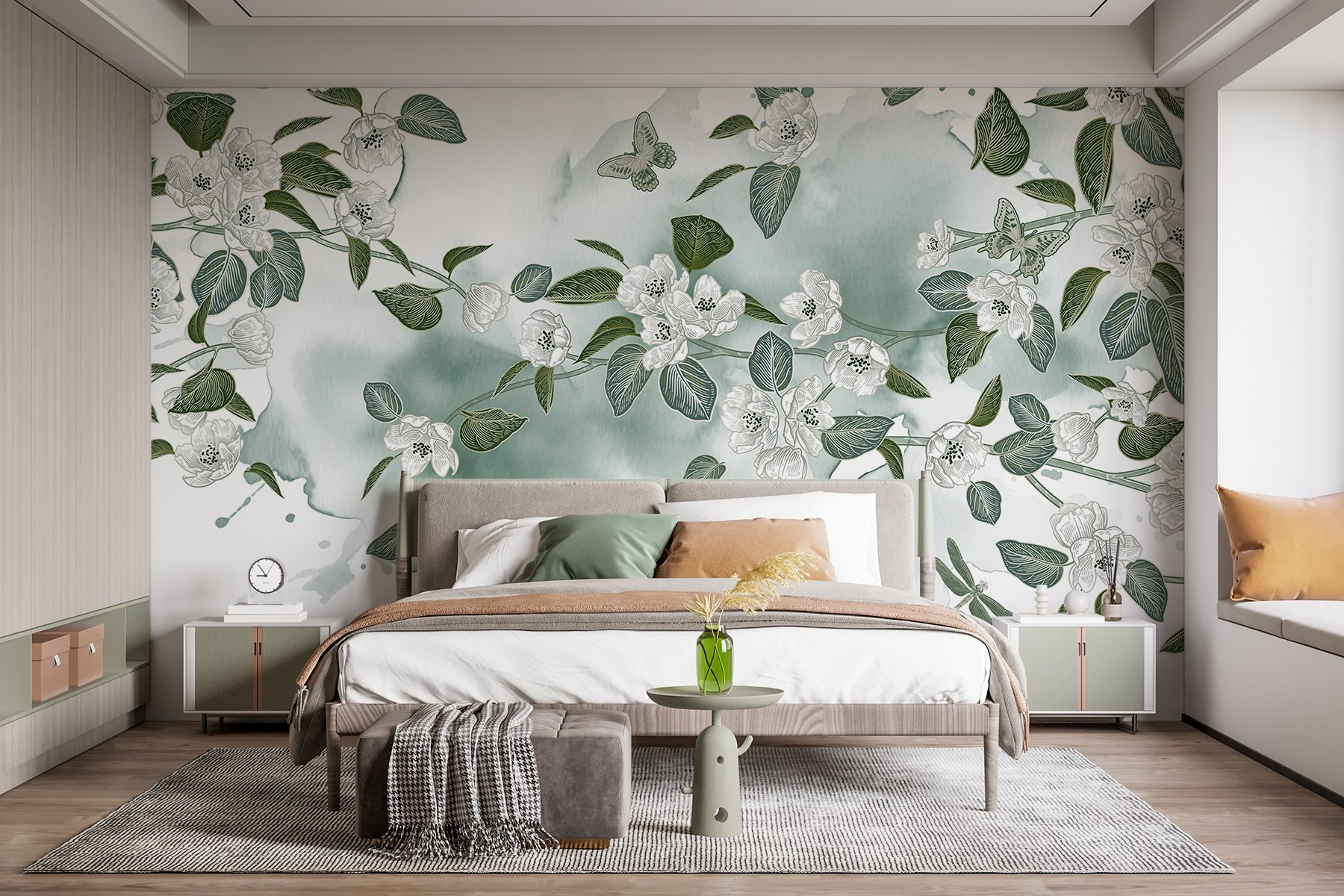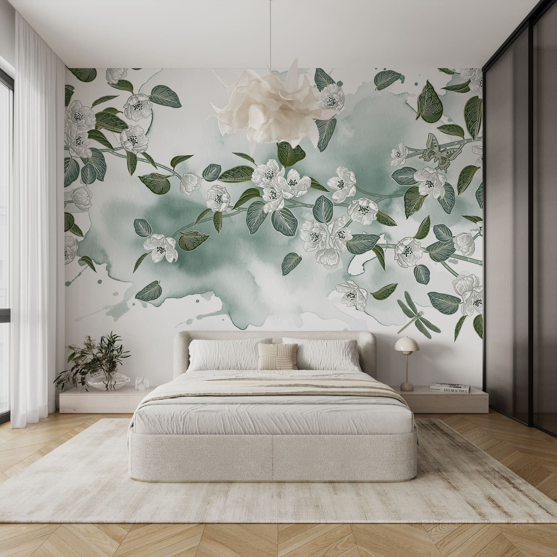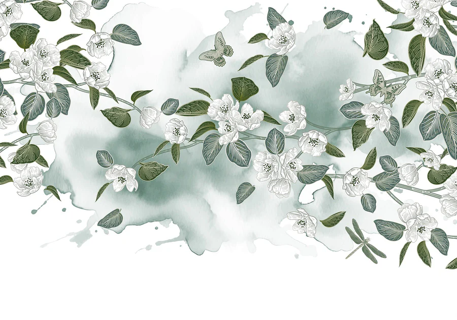 Varázsolja át otthonát ezzel a varázslatos, fehér virágokkal és buja zöld levelekkel díszített falfestménnyel, amely lágy fehér háttér előtt pompázik. Mintha a falai úgy döntöttek volna, hogy kertipartit rendeznek, és a természetet meghívják otthonába. Képzelje el, ahogy kávét kortyolgat, miközben a pillangók körülötte repkednek (jó, talán nem szó szerint, de olyan érzés). Ez az akvarell mintázat nyugtató hangulatot kölcsönöz, tökéletes hangulatos nappalikhoz vagy nyugodt hálószobákhoz. Frissítő, elegáns és kissé szeszélyes – biztosan jó beszélgetésindító! Ráadásul ki ne szeretne minden nap virágos örömökkel ébredni?