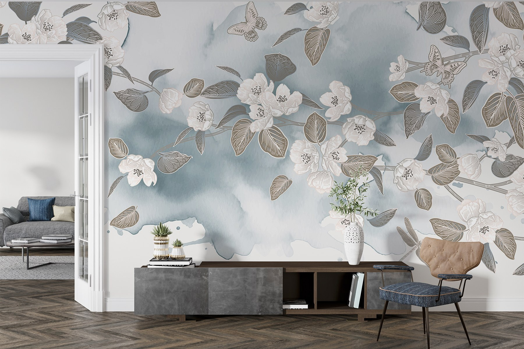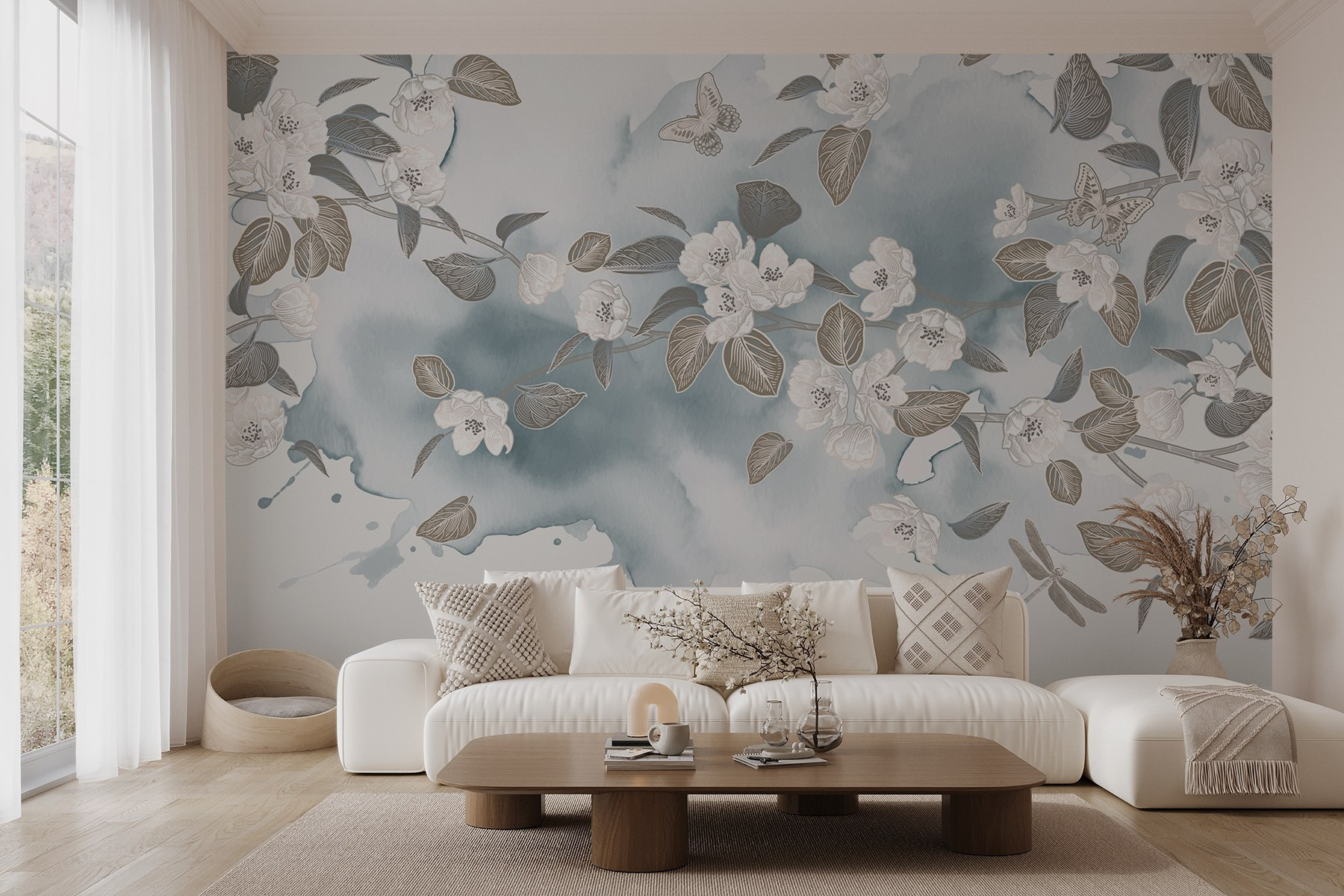 Alakítson át bármilyen helyiséget ezzel a lenyűgöző falfestménnyel, amelyen fehér virágok és levelek táncolnak nyugodt kék háttéren. Képzeld el, hogy erre a szelíd szépségre ébredsz – mintha a tavasz egyenesen a falaidra telepedett volna. Az akvarell hatás lágy, álmodozó hangulatot kölcsönöz, amely még a legborúsabb napokat is feldobja. Akár egy hangulatos nappaliban, akár egy nyugodt hálószobában, ez a falfestmény békére és nyugalomra hív. Tökéletes azoknak, akik imádják a természetet, de esetleg elfelejtik öntözni a növényeiket. Ez egy kedves kis menekülés közvetlenül otthonában, amely minden pillanatot egy kicsit különlegesebbé tesz. Tökéletes érintés, igaz?