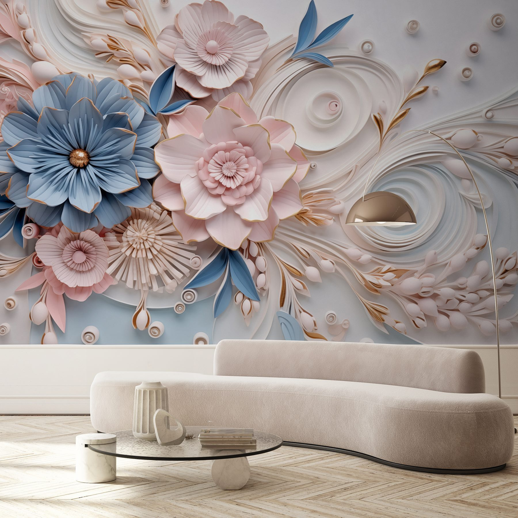 Alakítson át bármilyen szobát álomszerű meneküléssé ezzel a lenyűgöző, papírvirágokból és levelekből álló falfestménnyel. Képzeld el, hogy minden nap egy nyugodt kertbe lépsz, ahol finom virágok és kavargó levelek táncolnak a falon. Ez egy szelíd emlékeztető arra, hogy a szépség mindenütt ott van, még a beltérben is. A lágy színek nyugtató hangulatot árasztanak, szinte könyörögnek a hangulatos délutánokért, amelyeket egy csésze tea és egy jó könyv társaságában töltesz. Tökéletes a nappaliba vagy a hálószobába, olyan, mintha a természetet hívnád be, anélkül, hogy a növények locsolása miatt kellene aggódnod. Csak dőljön hátra, pihenjen, és hagyja, hogy ez a falfestmény megtegye a hatását.