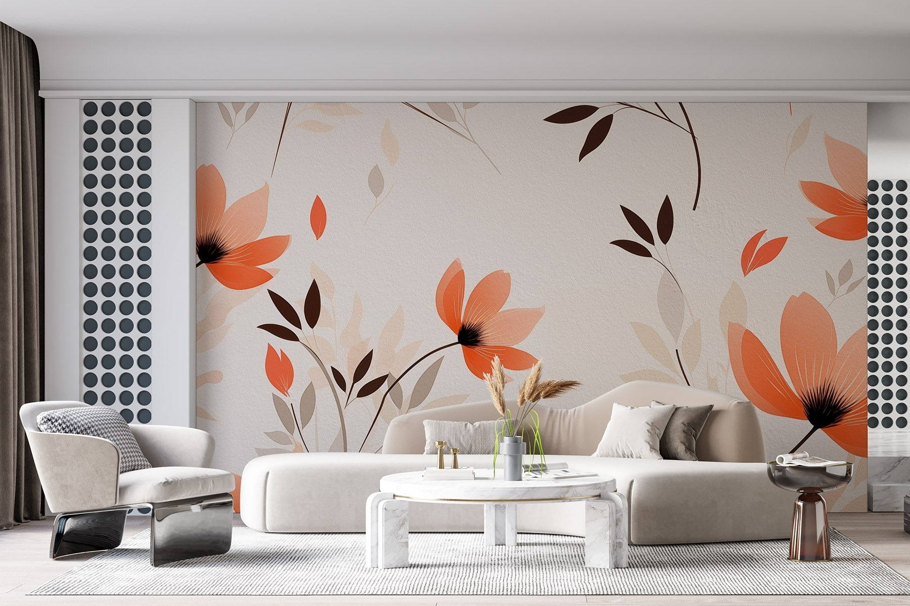 Bármilyen teret nyugodt oázissá varázsolhatsz ezzel a kedves, finom virágokkal és leveles mintákkal díszített falfestménnyel. Képzelje el, hogy minden alkalommal, amikor belép a szobába, egy nyugodt japánkertben sétálhat – mintha a természet egy szeletét hozná be a szobába. A meleg tónusok és a gyengéd minták nyugtató hangulatot teremtenek, amely tökéletes egy hangulatos olvasósarokba vagy egy világos, vidám lakótérbe. Képzelje csak el, ahogy teát kortyolgat, miközben ez a virágos báj veszi körül. Ez egy egyszerű módja annak, hogy melegséget és szépséget hívjon meg mindenféle felhajtás nélkül. Ki gondolta volna, hogy a fali dekoráció ilyen üdítő lehet?