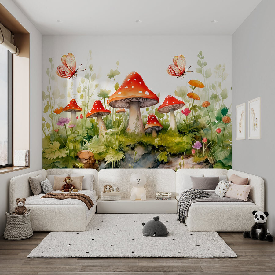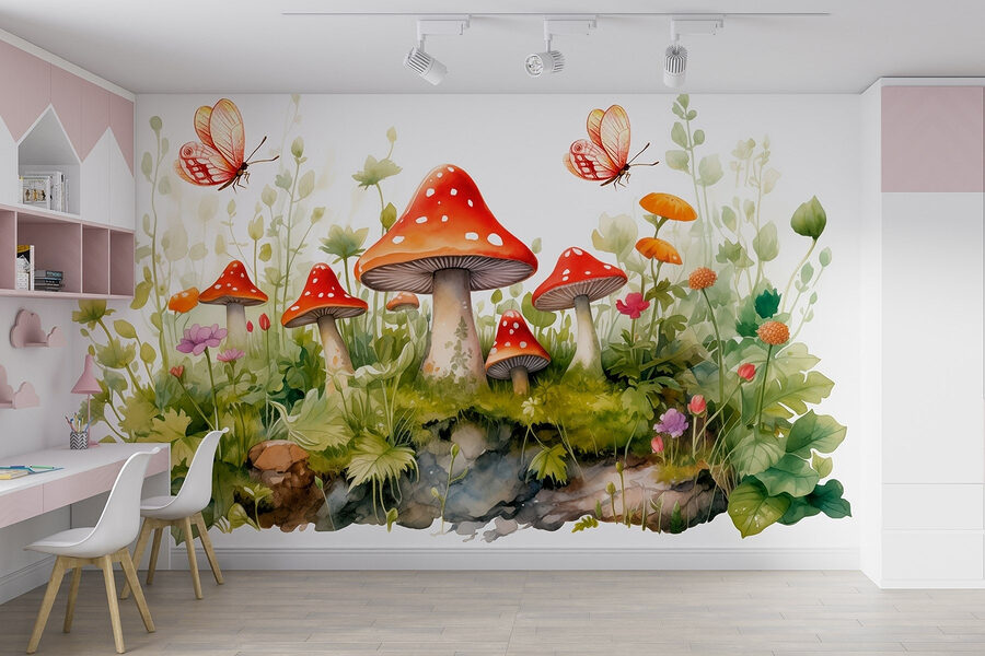 Alakítsa át terét ezzel a varázslatos falfestménnyel, amelyen bájos gombák és finom pillangók láthatók. Képzelje el, hogy egy olyan szobába lép be, ahol a természet szeszélye táncol körülötte. A gombák élénkpiros kalapjai úgy tűnnek fel, mint a cukorkák az erdőben, míg a lágy pasztellvirágok átbukkannak a buja zöldön. Azok a pillangók? Tiszta varázslat, úgy röpködnek a színen, mintha valami különleges helyre vágynának. Mintha egy tündérmese egy szeletét hoznád be az otthonodba, arra invitálva, hogy állj meg, és értékeld az élet apró csodáit. Ez a falfestmény nem csak díszít – örömet okoz! Tökéletes egy hangulatos zugba, egy gyerekszobába, vagy bármely olyan helyre, ahová jól jönne egy kis vidámság.
