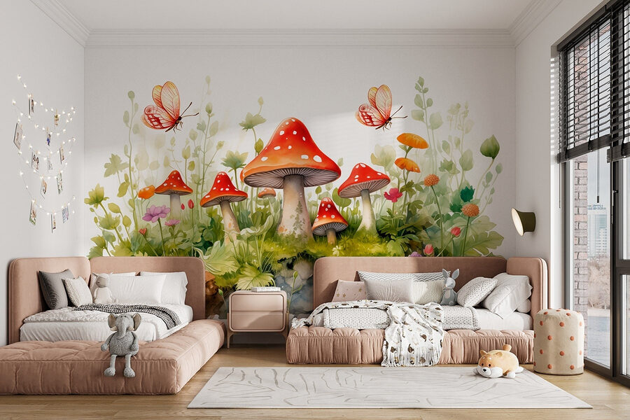 Alakítsa át terét ezzel a varázslatos falfestménnyel, amelyen bájos gombák és finom pillangók láthatók. Képzelje el, hogy egy olyan szobába lép be, ahol a természet szeszélye táncol körülötte. A gombák élénkpiros kalapjai úgy tűnnek fel, mint a cukorkák az erdőben, míg a lágy pasztellvirágok átbukkannak a buja zöldön. Azok a pillangók? Tiszta varázslat, úgy röpködnek a színen, mintha valami különleges helyre vágynának. Mintha egy tündérmese egy szeletét hoznád be az otthonodba, arra invitálva, hogy állj meg, és értékeld az élet apró csodáit. Ez a falfestmény nem csak díszít – örömet okoz! Tökéletes egy hangulatos zugba, egy gyerekszobába, vagy bármely olyan helyre, ahová jól jönne egy kis vidámság.