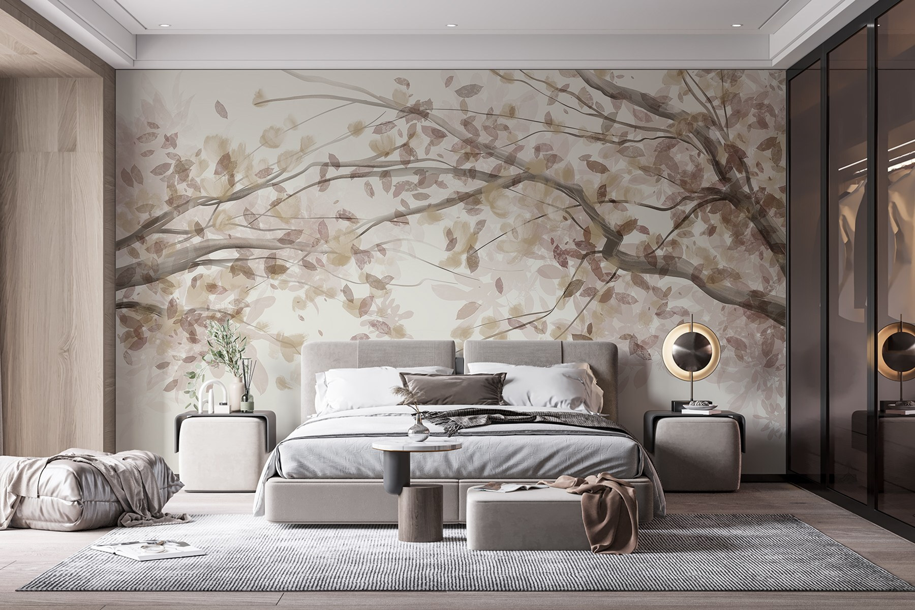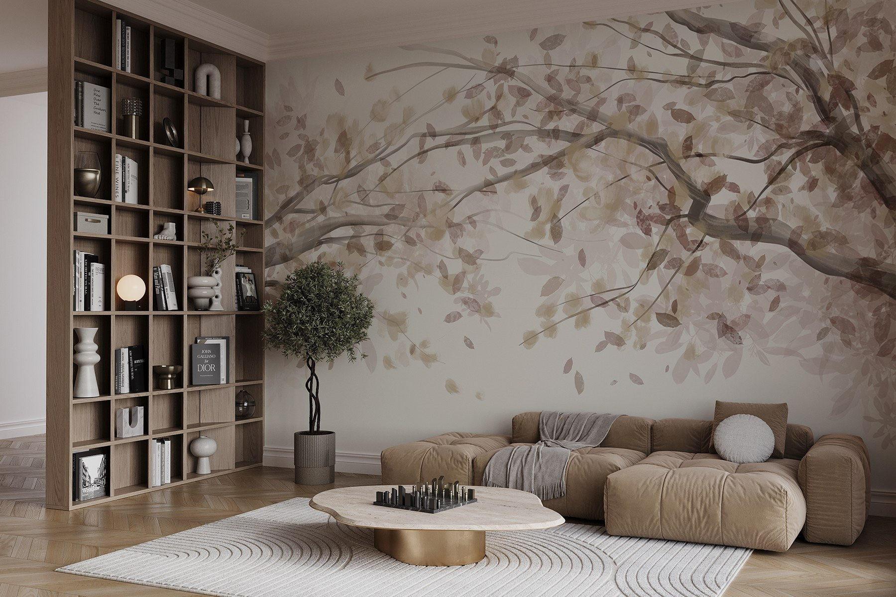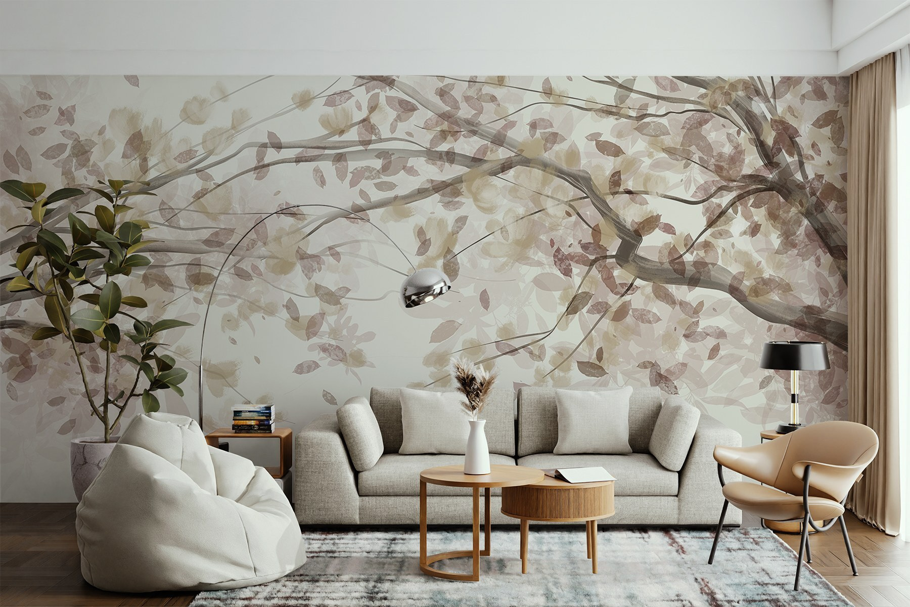 Alakítson át bármilyen helyiséget ezzel a bájos falfestménnyel, amely a levelekkel díszített faágak báját örökíti meg. Képzelje el, hogy egy nyugodt japánkertbe lép, anélkül, hogy elhagyná otthonát. A szelíd árnyalatok nyugodt hátteret teremtenek, nyugalmat suttognak, miközben a természet kegyelméből csobbanást adnak hozzá. Tökéletes egy hangulatos olvasósarokba vagy egy megnyugtató hálószoba hangulatához. Képzelje el a csendes elmélkedés pillanatait, talán egy csésze forró teával a közelben. Kinek van szüksége a természetbe vonulásra, amikor ez a falfestmény a békét egyenesen befelé hozza? A természet szerelmesei és a dekoráció szerelmesei rajongani fognak a finom eleganciáért!