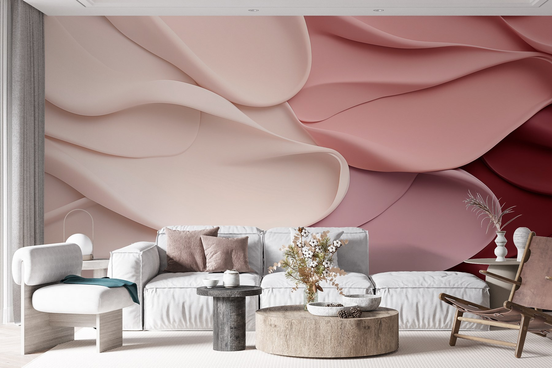 Alakítson át bármilyen helyiséget ezzel a bájos falfestménnyel, amely rózsaszín és fehér hullámos szövetek játékos táncát mutatja be. Képzelje el, hogy egy olyan térbe lép, amely olyan, mint egy meghitt ölelés, ahol a lágy hullámok a nyugalom és a kényelem érzetét keltik. Olyan, mintha egy kis szelíd eleganciát hoznál az otthonodba. Ez a falfestmény tökéletes egy olvasósarokba vagy egy nyugodt hálószobába, és nyugodt pillanatokat inspirálhat – gondoljon csak arra, hogy egy jó könyvvel összegömbölyödhet, miközben nyugtató hangulata körülveszi. Ki ne szeretne egy olyan hátteret, amely olyan, mint egy hangulatos takaró a falakon? Olyan művészet, amelyet meg akarsz érinteni, egy beszélgetésindító, amely melegséget kölcsönöz anélkül, hogy túlterhelné. Akár egy nagyobb felújításról, akár csak egy kis frissítésről van szó, ez a falfestmény egyedivé teszi a teret.