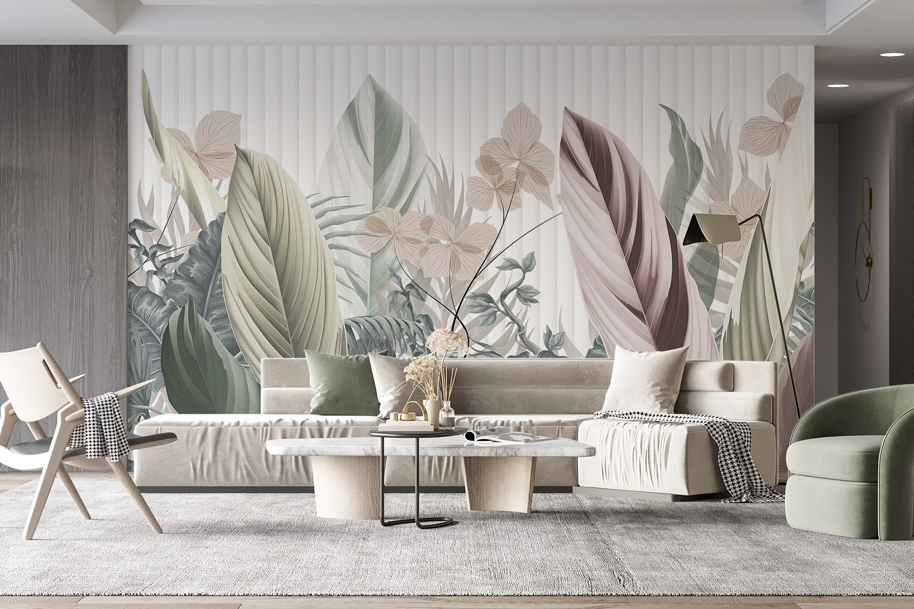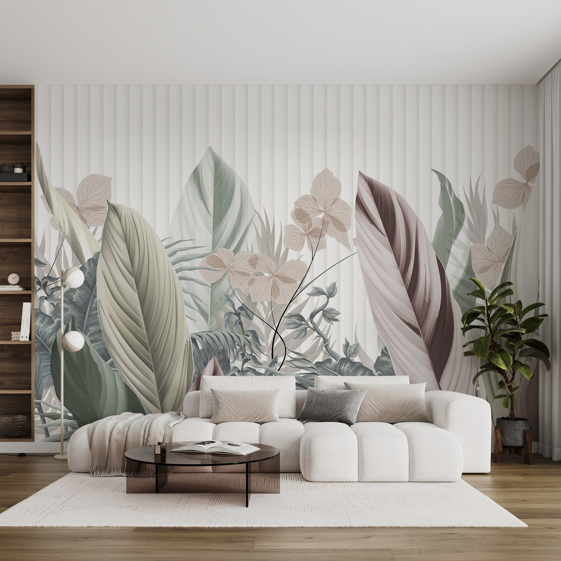 Alakítsa át terét ezzel a varázslatos falfestménnyel: “Természetes elegancia tompa tónusokban”. Képzelje el, hogy minden alkalommal, amikor belép a szobába, egy nyugodt kertbe lép. A levelek és virágminták lágy palettája olyan, mintha egy lágy szellő susogna a fák között. Olyan, mintha a természetet egyenesen a falra varázsolná – nem kell hozzá zöld hüvelykujj!