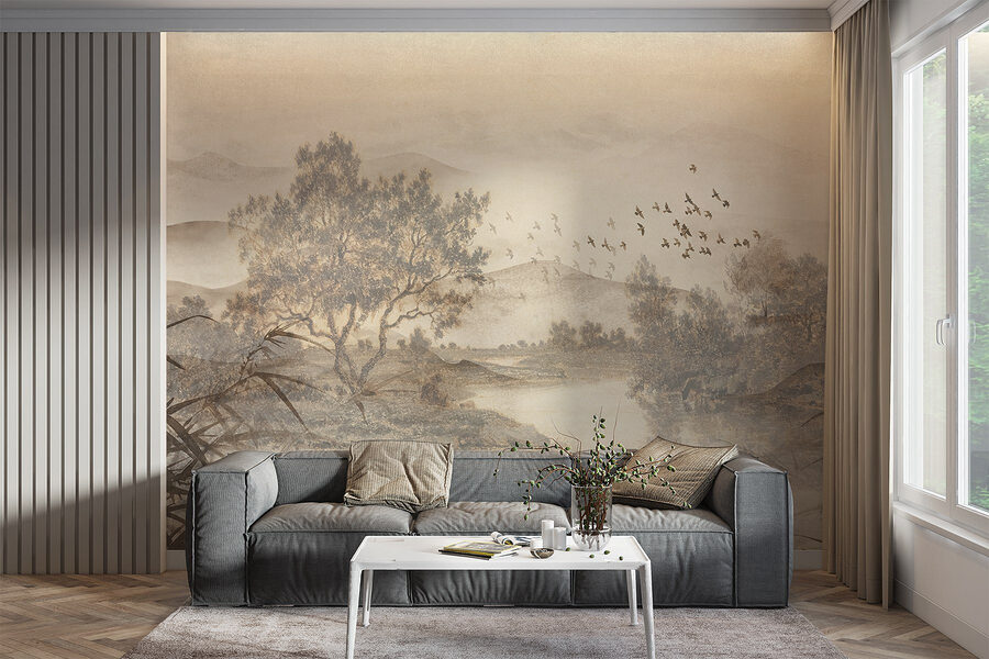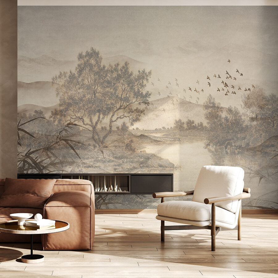 Alakítson át bármilyen helyiséget nyugodt meneküléssé ezzel a lenyűgöző falfestménnyel, amely egy nyugodt, fákból és egy szelíd folyóból álló tájat ábrázol. Képzelje el, hogy a természet lágy árnyalataira ébred – mintha a természet egy darabját hozná be a házába. Az akvarell stílus álomszerűvé teszi a képet, amely tökéletesen megnyugtatja az elmét egy hosszú nap után. Képzelje el, hogy kávét kortyolgatva bámulja a játékos madarakat, vagy tökéletes hátteret biztosít egy hangulatos olvasósarok számára. Ez a falfestmény békés pillanatokról és lusta délutánokról suttog. Ez nem csak művészet; ez egy élmény, amely arra vár, hogy feldobja a terét.