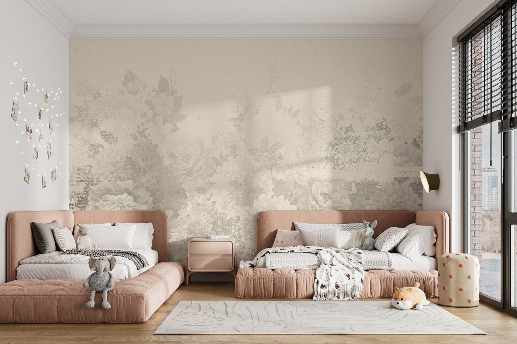 Alakítson át bármilyen helyiséget ezzel a lenyűgöző, finom virágos falfestménnyel, ahol lágy tónusok találkoznak, mint egy lágy tavaszi szellő. Képzelje el, hogy belép a helyiségébe, és úgy érzi, mintha egy nyugodt kertbe lépett volna. A finom árnyalatok nyugtató hátteret teremtenek, amely tökéletes a hosszú nap utáni kikapcsolódáshoz. Olyan, mintha lágy beszélgetést folytatna a természettel közvetlenül a falain!