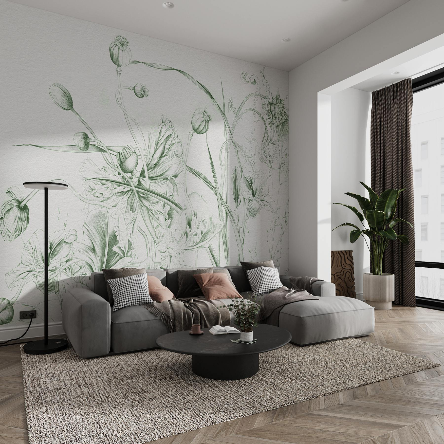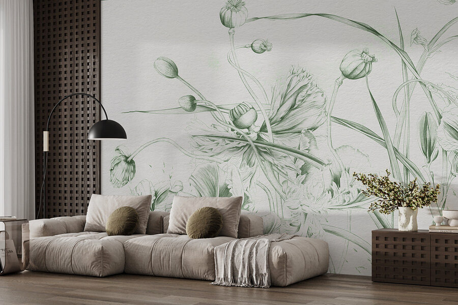 Bármelyik szobát hangulatossá varázsolhatja ezzel a lenyűgöző falfestménnyel, amely a virágok és levelek finom táncát ábrázolja. Képzelje el, hogy kávét kortyolgatva a természet műalkotásaival van körülvéve – a zöldellő növényzet gyengéd érintése valóban csodákat tesz a lélekkel. Olyan érzés, mintha egy nyugodt kertet hoznál be a házba, anélkül, hogy az öntözés vagy a bosszantó rovarok miatt kellene aggódnod. Legyen szó nappaliról, hálószobáról vagy akár előszobáról, ez a falfestmény melegséget és nyugalmat áraszt. És bónusz pontokat ad a kreativitás ösztönzéséért! Tökéletes az álmodozóknak és a művészet szerelmeseinek egyaránt. Olyan, mintha egy botanikai galéria lenne a falon.