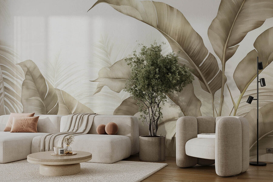 Dobja fel terét ezzel a lenyűgöző falfestménnyel, amely természetes tónusok és elegáns lombok gyönyörű mintázatát mutatja be. Képzelje el, hogy belép egy olyan szobába, ahol a lágy zöldek és a gyengéd barnák meghitt ölelésbe burkolják Önt, szinte mintha a természet meleg ölelése lenne. Tökéletes azokhoz a napokhoz, amikor egy trópusi kiruccanásról álmodozol, anélkül, hogy elhagynád az otthonodat. A levelek zökkenőmentes keveredése egy csipetnyi kifinomultságot kölcsönöz, így még a legkisebb területet is buja oázisnak érzi. Egy unalmas falat alakítson át beszélgetésindítóvá – a vendégek nem fogják megállni, hogy ne csodálják meg. Művészet? A természet? Talán mindkettő!