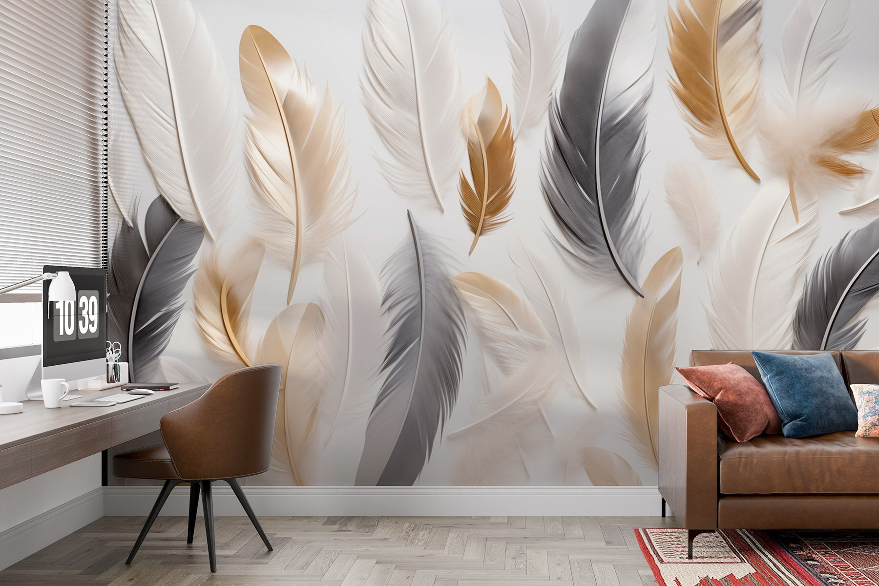Alakítson át bármilyen helyiséget ezzel a lenyűgöző falfestménnyel, amely gyönyörű tollak gyönyörű elrendezését ábrázolja ropogós fehér alapon. Mintha egy szellős, könnyed hangulatot hozna egyenesen az otthonodba. Képzelje el, hogy minden reggel erre az elegáns dizájnra ébred, amely a szabadban töltött nyugodt napokra emlékeztet. A tollak árnyalatainak keveredése mélységérzetet ad – úgy tűnik, mindegyiknek megvan a saját személyisége, és csak arra vár, hogy valaki észrevegye. Tökéletes egy hangulatos olvasósarokba vagy egy elegáns előszobába, ez az a fajta műalkotás, amely miatt a vendégek kétszer is megnézik majd. Hagyja, hogy a falak meséljenek, melegséget és egy kis természetet varázsolva befelé.