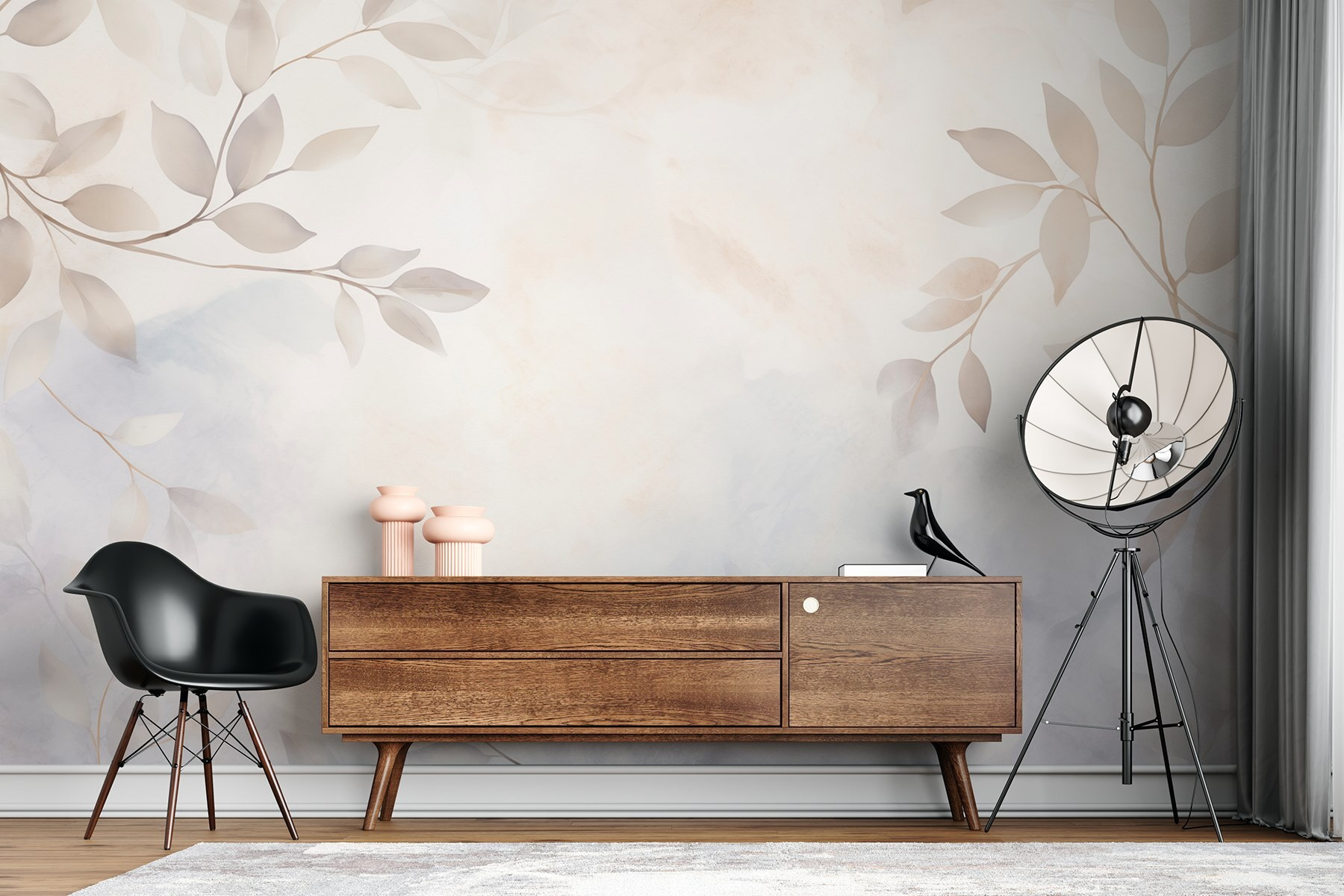 Képzelje el, hogy belép egy olyan szobába, amely olyan, mint egy nyugodt menekülés, ahol lágy fehér és szürke levelek táncolnak a szelíd háttéren. Ez a falfestmény nem csupán dekoráció; olyan, mint a természet suttogása, amely nyugodt hangulatot visz bármelyik térbe. Képzelj el egy hangulatos olvasósarkot, ahol a levelek köréd tekerednek, így minden egyes lapozás még varázslatosabbnak tűnik. Ez az a fajta dizájn, amely csendes örömöt ébreszt, mint egy csésze meleg tea egy esős délutánon. Ez a falfestmény tökéletesen illik minden olyan helyre, amelynek szüksége van egy kis frissességre, és életet lehel a falakba anélkül, hogy ellopná a show-t. Egy kis elegancia, sok béke. Mit nem lehet szeretni?