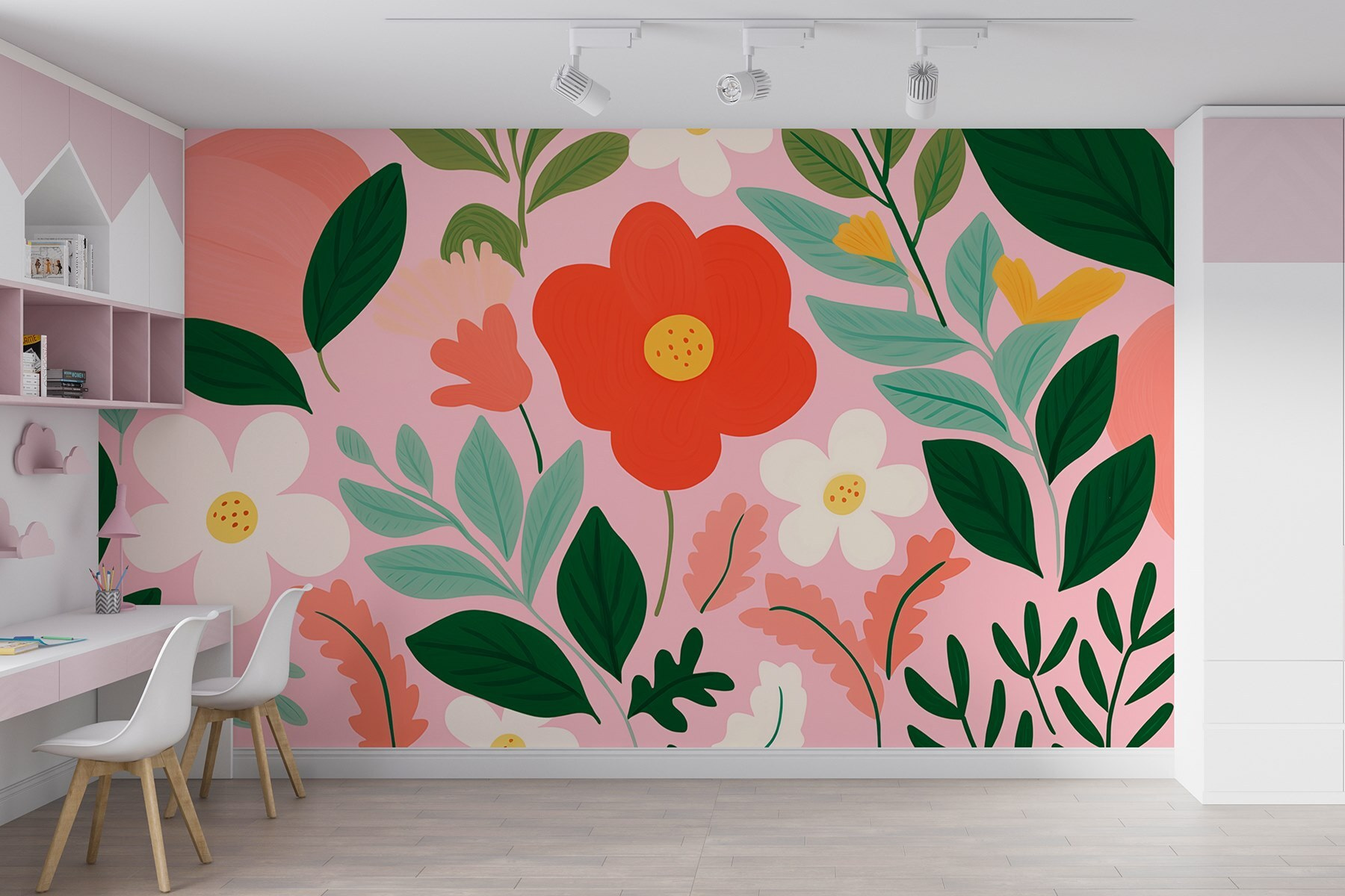 Bármelyik szobát virágzó paradicsommá varázsolhatja ezzel a virágokat és leveleket ábrázoló, élénk falfestménnyel. A vidám paletta élénk vörösökkel, lágy rózsaszínnel és friss zöldekkel táncol, így egész évben tavaszias érzést nyújt. Képzeld el, hogy otthon lustálkodsz, körülvéve a természet e kitörésével, és hirtelen egy napsütötte kertbe kerülsz – szeszélyes virágokkal, amelyek úgy tűnik, hogy felvidítanak. Ez a falfestmény tökéletesen feldobja a nappalit, vagy hangulatos olvasósarkot hoz létre, olyan, mintha a természet ölelné meg. Csak képzelje el: kávét szürcsölgetve, a vidám hangulatot csodálva, és talán a következő kalandról álmodozva a szabadban.
