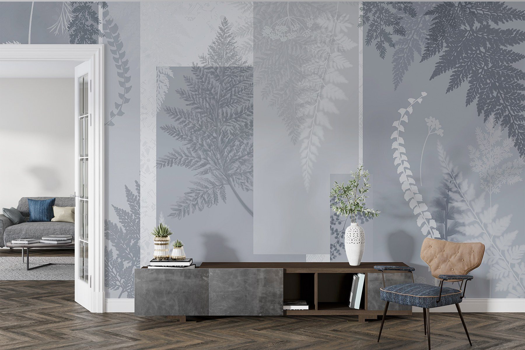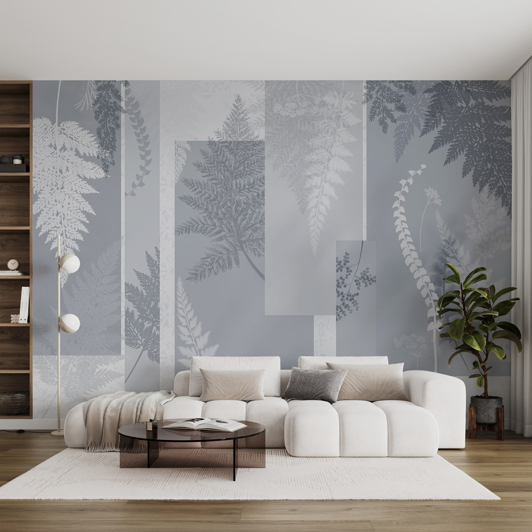 Alakítson át bármilyen helyiséget ezzel a varázslatos szürke és fehér virágos falfestménnyel. Olyan, mintha egy leheletnyi nyugodt erdőt hozna az otthonába – a bosszantó szúnyogok nélkül. A páfrányok és lombok finom mintái nyugtató táncban kavarognak egymás mellett, tökéletes hangulatos terekbe vagy élénk összejövetelekhez. Képzelje el, ahogy kávét kortyolgatva a napfény átszűrődik, megvilágítva a lágy mintákat, szelíd hangulatot teremtve. Ez az a fajta dekoráció, amely kifinomultságot sugároz, miközben mégis nagyon is hívogató. Ez a falfestmény bármelyik falat békés visszavonulássá varázsolhatja – ki ne szeretné ezt?