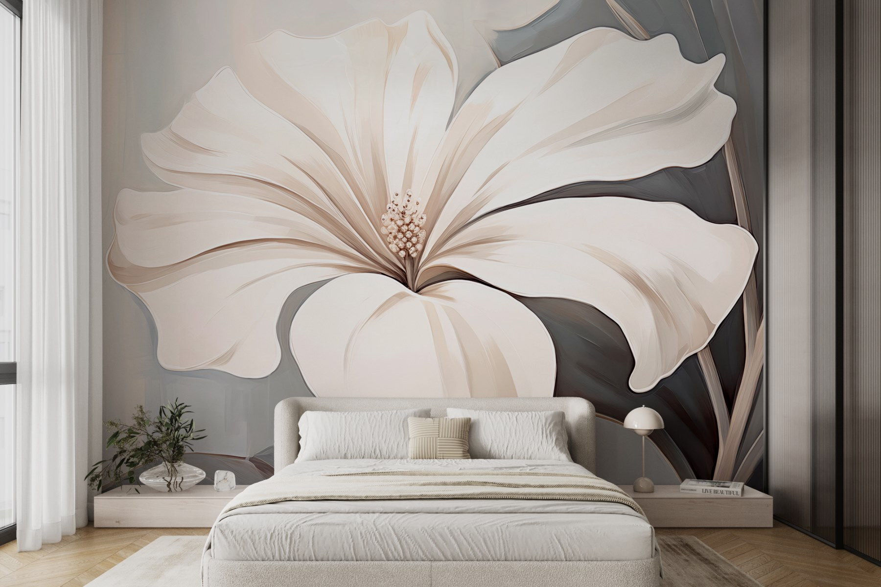 Alakítson át bármilyen teret ezzel a lenyűgöző falfestménnyel, amely egy gyönyörű fehér virágot ábrázol nyugtató szürke háttér előtt. Olyan, mint egy kis friss levegő a falakon, nyugodt hangulatot varázsolva otthonába. Képzelje el, hogy kedvenc zugában ül, egy meleg itallal a kezében, miközben ez a falfestmény a természet eleganciáját idézi. Tökéletes egy hangulatos nappaliba vagy egy nyugodt hálószobába, csendes kijelentést tesz anélkül, hogy a figyelemért kiáltana. Minden a könnyed bájról szól, amitől a vendégek azonnal jól érzik magukat. És legyünk őszinték, ki ne szeretne egy olyan virágot, amely soha nem hervad el? Ráadásul remek beszélgetésindító – csak várd ki, amíg a bókok elkezdenek gurulni!