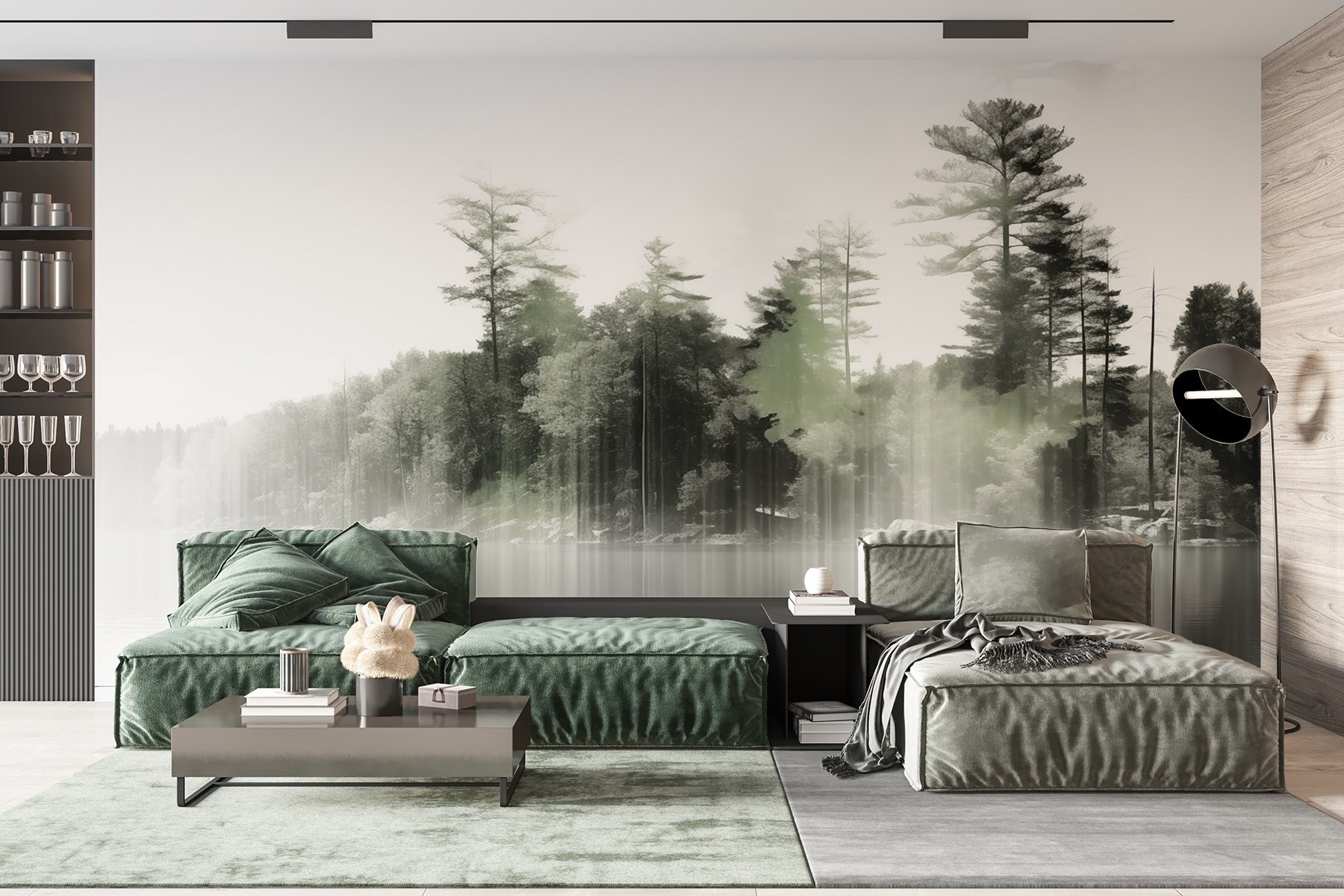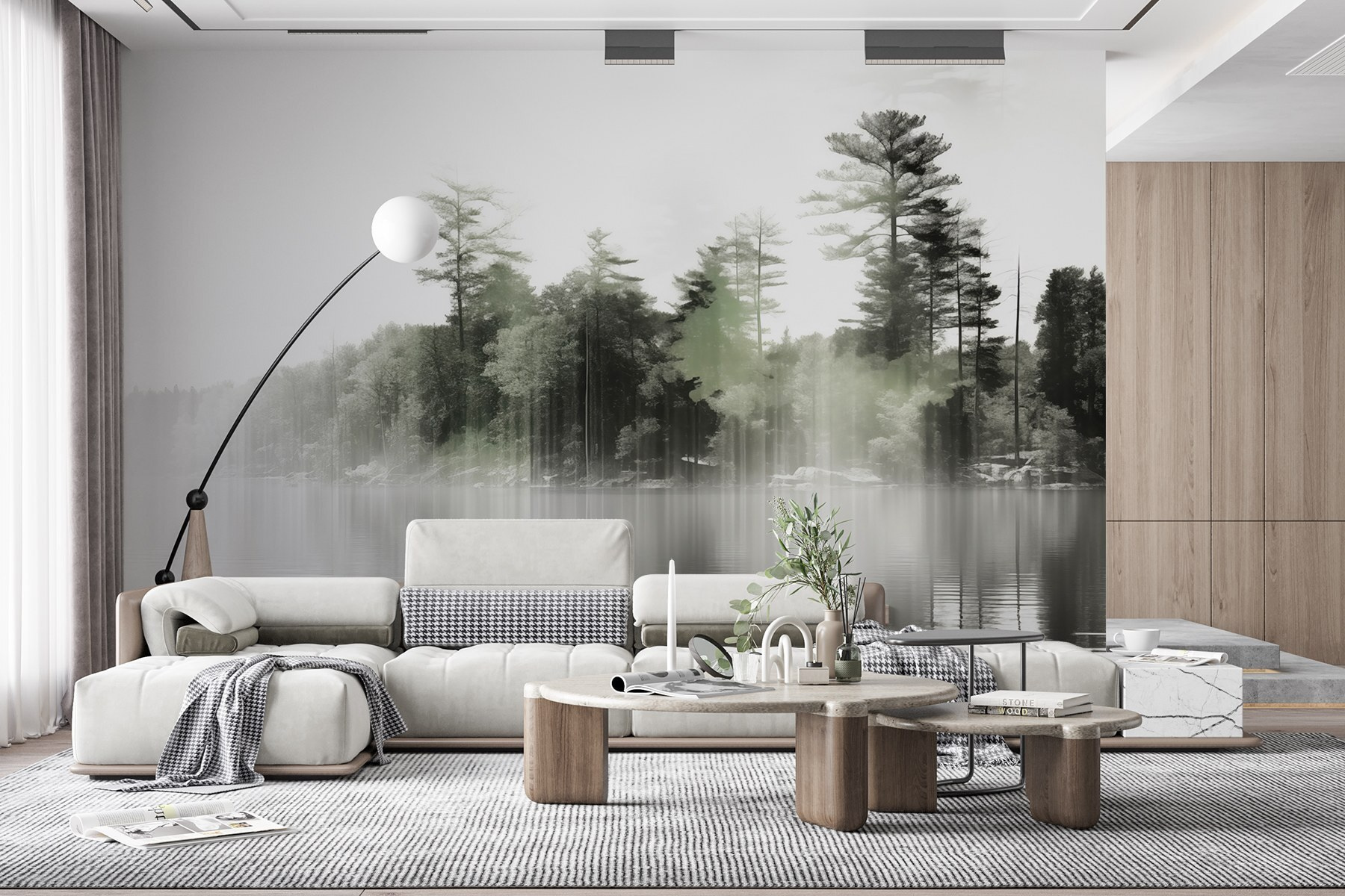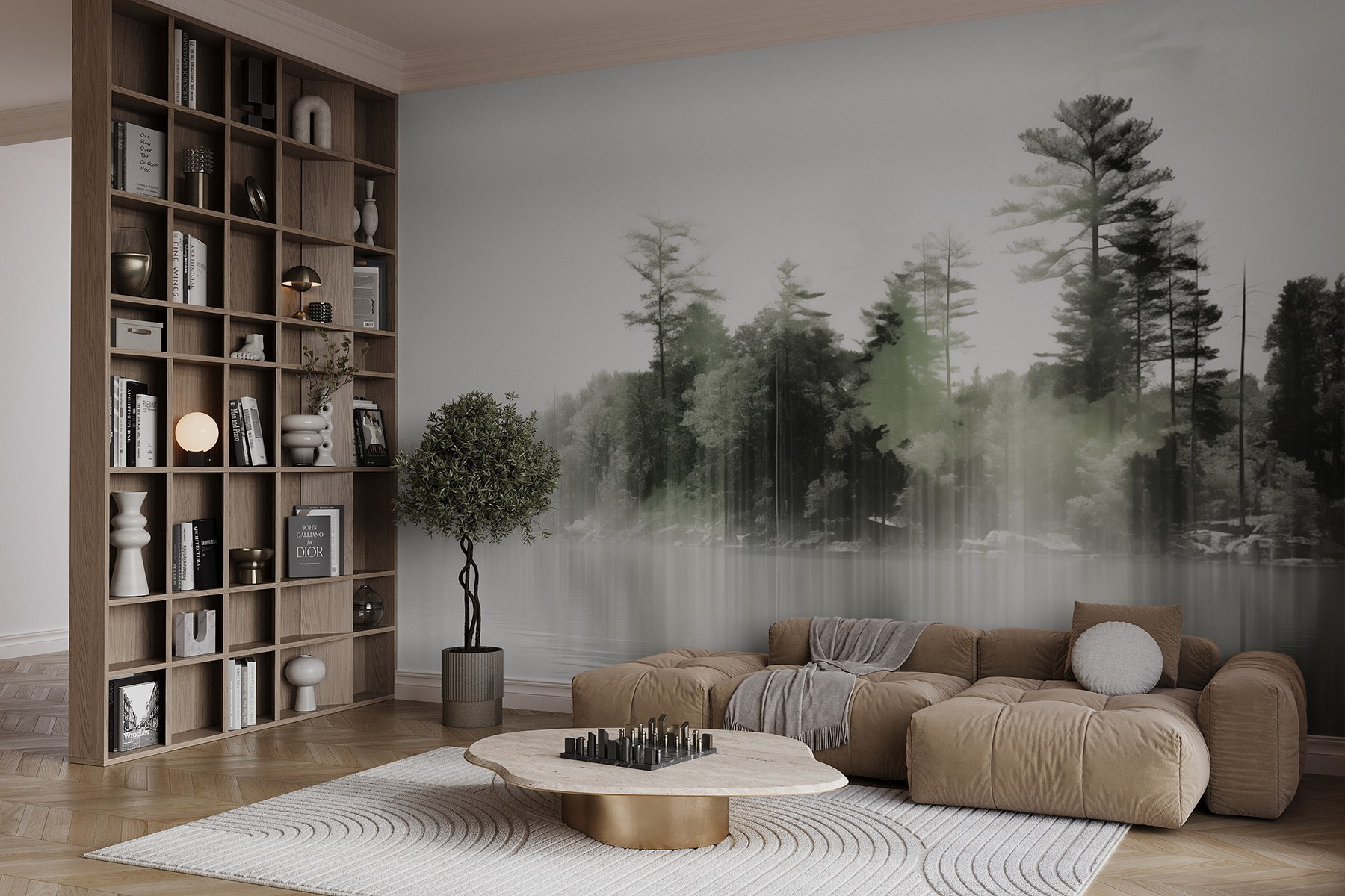 Egy fal átalakítása egy ilyen falfestménnyel olyan érzés lehet, mintha egy békés menedékhelyre lépnénk. Képzelje el a nyugodt vizek fölé boruló köd lágy suttogását, amelyet magas, őrködő fák kereteznek. Nyugalomra hív, szinte olyan, mint egy lusta vasárnap reggel, amikor kávét kortyolgatva nézi a természet ébredését. Ahogy a fény átszűrődik, olyan éteri minőséget áraszt, amely minden pillantást apró meneküléssé tesz. Tökéletes egy hangulatos olvasósarok kialakításához, vagy csak egy hely, ahol megállhatsz és elmélkedhetsz. Akassza fel, és hagyja, hogy a természet csendes eleganciájának szépsége átjárja terét, beszélgetésekre és álmodozásra egyaránt ösztönözve.