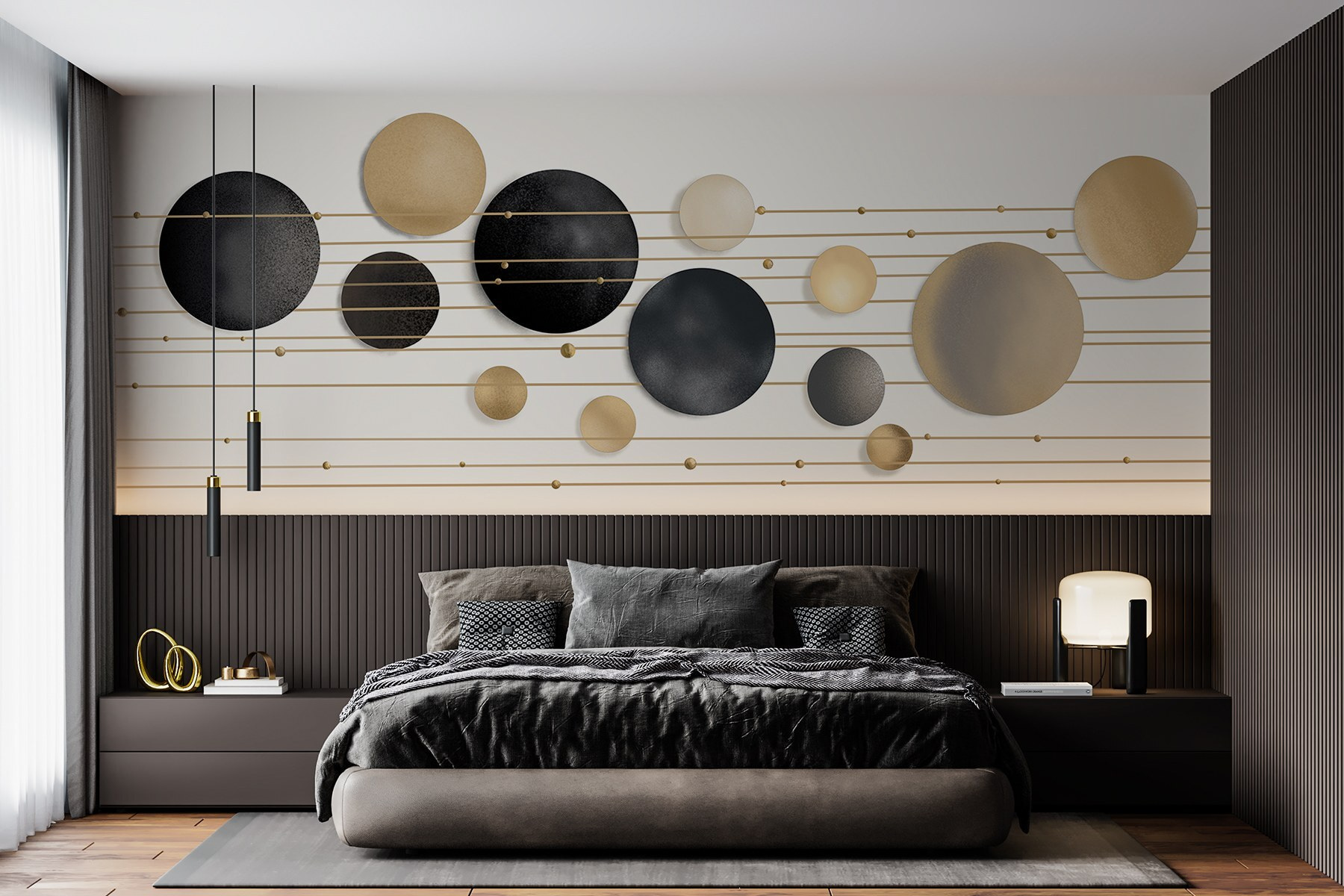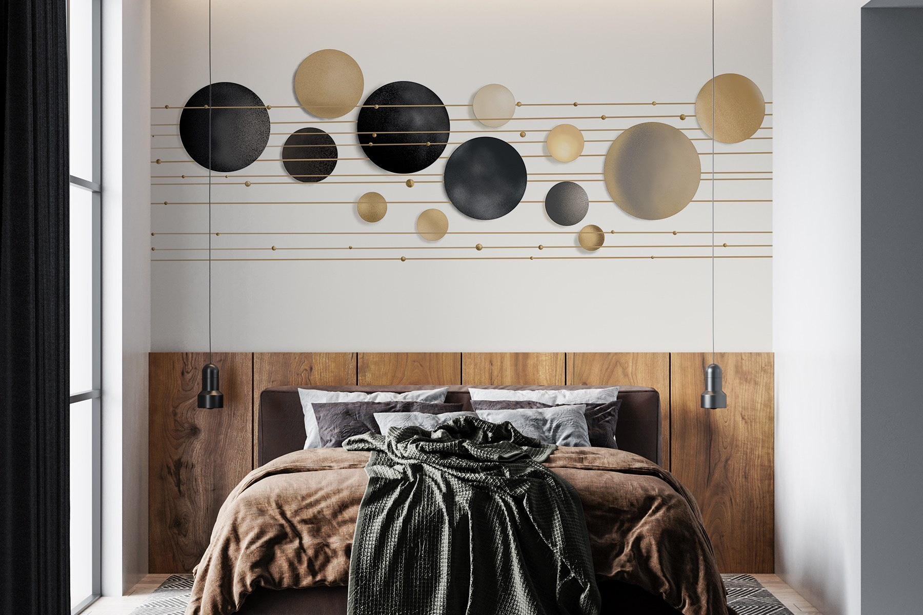 Alakítsd át a teret úgy, hogy az örömöt sugározzon! Ez a körök és vonalak játékos keverékét tartalmazó falfestmény olyan művészi hangulatot kölcsönöz, amely mindenkit megdöbbent. Olyan, mintha egy modern művészeti alkotás lenne a falon – tökéletes azokba a hangulatos nappalikba vagy elegáns irodákba, amelyeknek egy kis személyiségre van szükségük. Képzelje el, ahogy a vendégek besétálnak, megpillantják a falfestményt, és azt mondják: “Hű, ez szemet gyönyörködtető!”. A formák keveredése olyan ritmust teremt, amely szinte olyan érzést kelthet, mintha táncba keverednél. Finom, mégis feltűnő – egy vizuális csemege, amely melegséget áraszt anélkül, hogy túlságosan az arcodba vágna. Tökéletes mindenkinek, aki egy csipetnyi szeszélyben gyönyörködik!