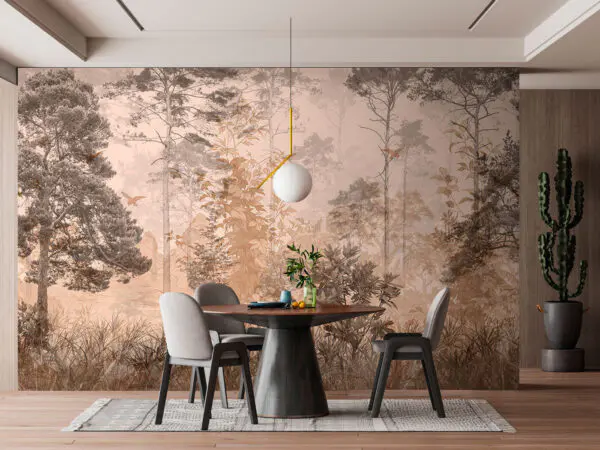 Fotótapéta Erdő fákkal és hegyekkel a háttérben
